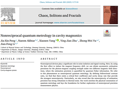 彭家鑫博士在《Chaos, Solitons and Fractals》发表最新研究成果