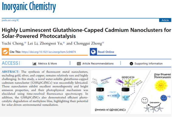 程宇驰博士在《Inorganic Chemistry》上发表最新研究成果