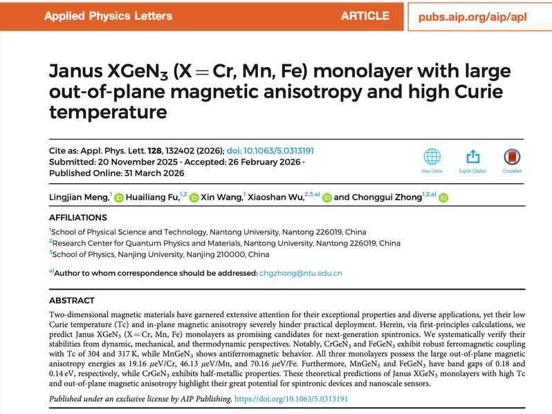 仲崇贵教授课题组在《Applied Physics Letters》发表最新研究成果