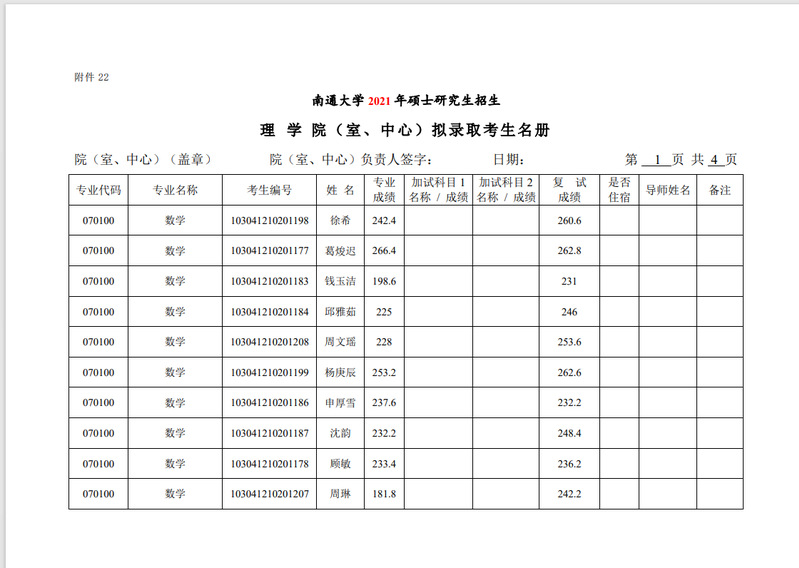 2021理学院研究生录取名单(一志愿和调剂,不含推免生)