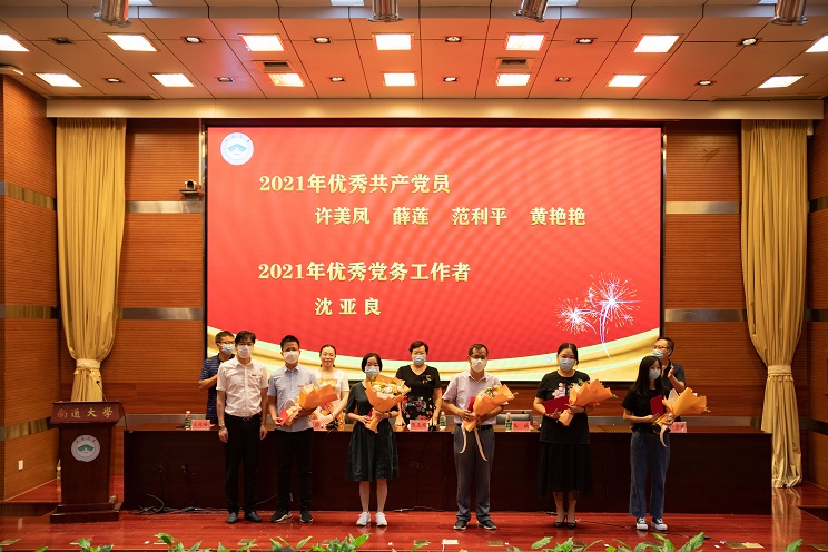 会上对2021年国家自然基金、社科基金获得者、校优秀教育工作者、校优秀共产党员、校卓越贡献奖和2021年新晋高级职称的教师教师进行了表彰。参会学院领导为获奖代表颁奖。