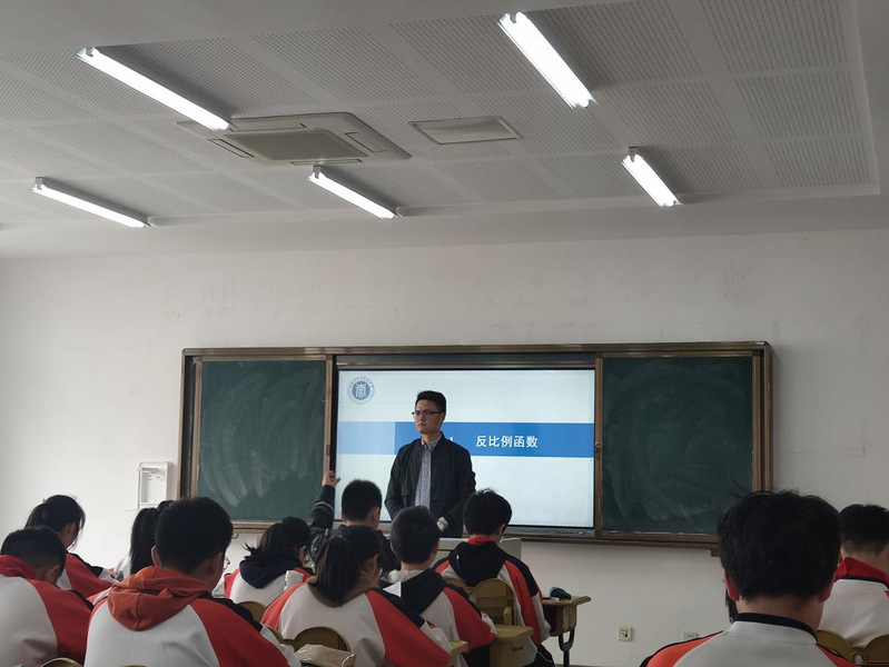 南通市崇川初级中学教师陈锦凤、姜丽梅老师共同为我们带来了《最短路径问题》几何复习观摩课,张玉萍、蔡勇老师则为我们带来了《反比例函数》代数新授观摩课。四位教师教学理念先进,目标明确,重点突出,教学各环节结构严谨,时间分配合理。课堂环节承上启下,步骤的巩固夯实力强。课堂上学生活动面广,发言率高。学生思维活跃,在轻松愉悦的气氛中掌握了相关知识,达到了良好的教学效果。同学们通过对几何复习及代数新授课的观摩,积极反思自我存在的问题,意识到在实践中不断探索总结的重要性,收获了良好的观摩效果。