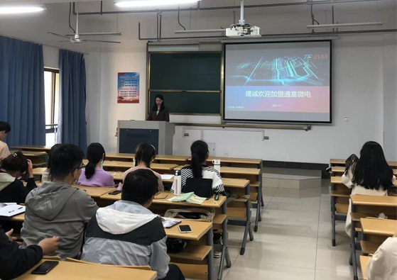 理学院技术物理系在11月18日针对2018级光电信息科学与工程专业学生进行了第一次实习动员,光电专业负责人许田介绍了实习的重要性和英国365集团实习要求,并且分别邀请了芯片企业捷捷微电、通富微电介绍各自企业所需岗位,能够提高的学生技能、企业文化、以及企业待遇等。同学们对于两家上市芯片企业有了更深入的了解。(许田)