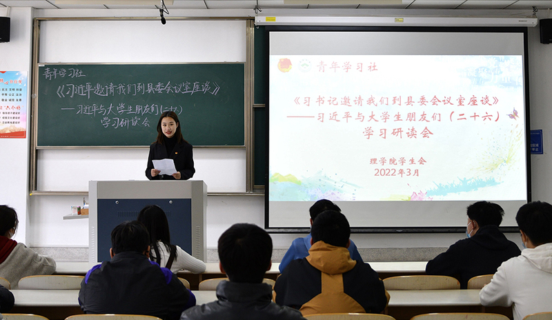 为深入贯彻落实党中央对做好青年思想引领工作的重要指示精神,坚持用习近平新时代中国特色社会主义思想武装头脑,3月23日,理学院开展主题为“《习近平与大学生朋友们》系列采访实录”的“青年学习社”学习研读活动。