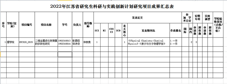 2022年江苏省研究生创新项目结题成果公示(理学院)