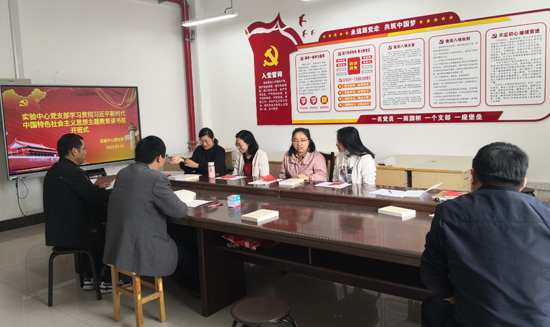 5月10上午,实验中心党支部在党员活动室举行学习贯彻习近平新时代中国特色社会主义思想主题教育读书班开班式。