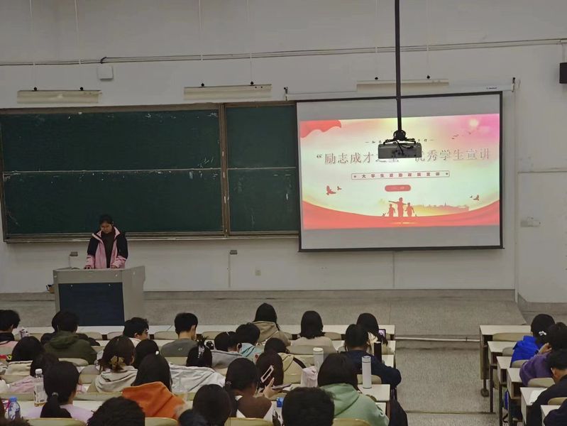 宣讲过程中,第一位宣讲人孟梦同学讲述了她进入大学以来致力于资助政策宣传、孜孜不倦一路向前的经历。她热心向学弟学妹们介绍国家以及学校的资助政策,鼓励每一位家庭经济困难的学生勇敢追梦。在学习上,她积极参加各类学科竞赛,时刻保持严谨认真的学风,坚持以学业为重,严于律己,参加全国大学生数学建模竞赛获得江苏省二等奖、校数学建模竞赛二等奖、院高数竞赛一等奖等,最终在综合测评中以第二名的成绩获得一等奖学金以及国家励志奖学金。这些时刻激励着她继续砥砺前行、不断进步。第位宣讲人是张文耀同学,他讲述了他大学入学以来,刻苦努力,坚定不移的朝着目标前进的故事。在学习上,他勤奋好学,以优异的成绩获得一等学业奖学金国家励志奖学金;在生活上,他以自身为同学和室友树立榜样,乐于帮助他人,管理好个人事务。身为班级班委,他尽职尽责,帮助同学解决生活中的困难;身为宿舍长,带领室友获得文明宿舍称号。张文耀同学在闲暇时间参加社区志愿服务,为营造更好的环境贡献自己的力量。这些经历使他更加相信现在的努力是成功的伏笔,今日的付出是明日的花开。