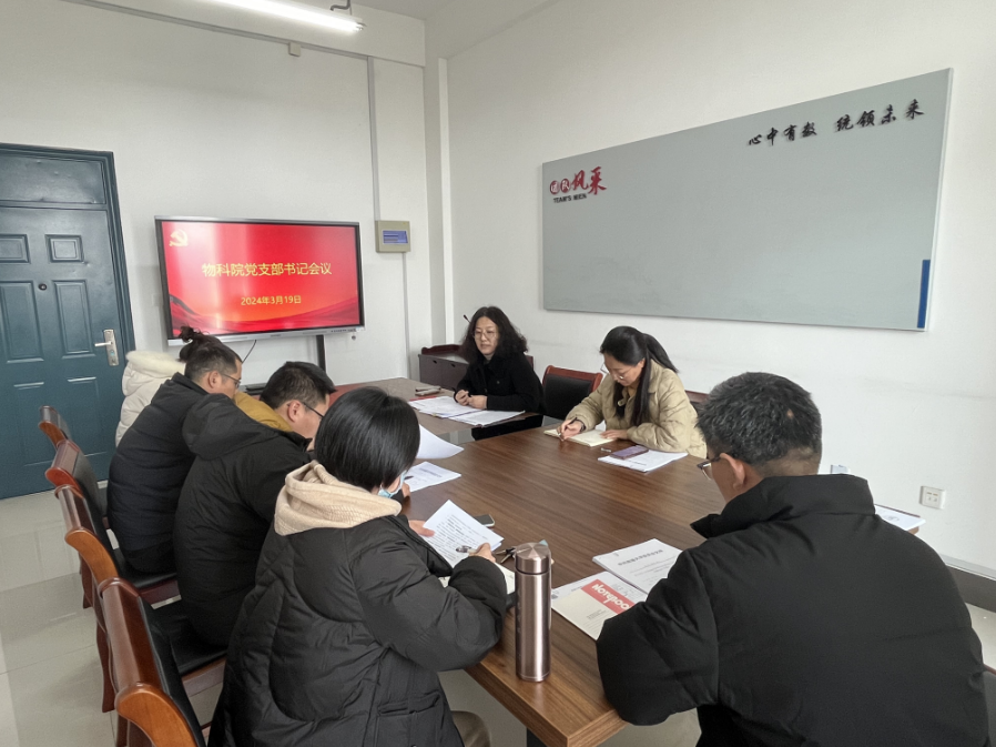3月19日,物科院召开党支部书记会议。学院党总支书记徐凌,副书记、副院长陈丽,各支部书记参加会议。