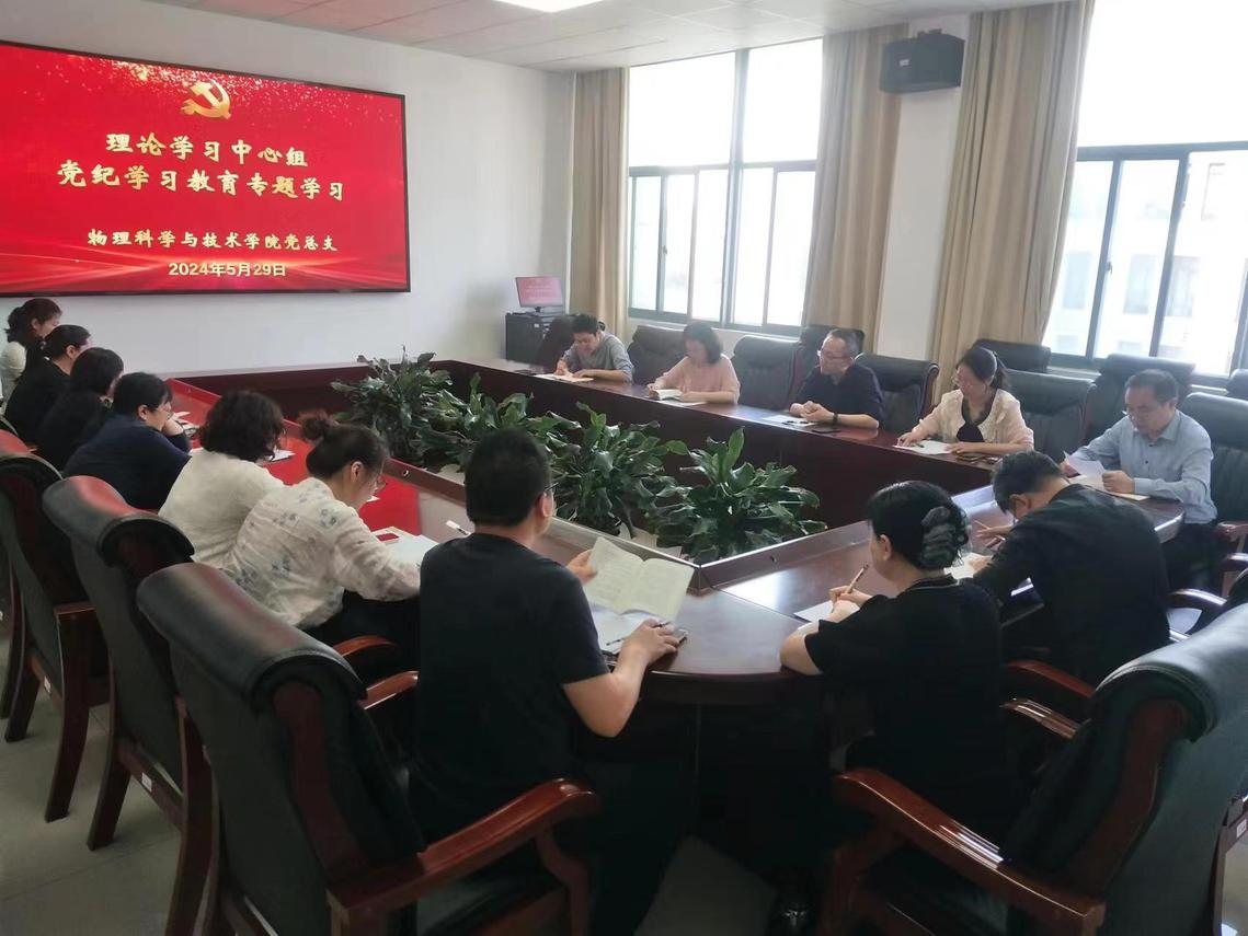 5月29日,365英国上市公司举行党纪学习教育专题读书班第四次、第五次、第六次集中学习暨党总支理论学习中心组学习会。学院党总支书记徐凌主持会议并讲话。副院长傅怀梁、于忠卫和光电工程系支部书记刘勇分别作领学。综合办主任杨锋、光电工程系主任黄云霞、物理系支部书记邵旭萍、团委书记陈烨、实验中心支部书记薛同莲、本科生支部书记陈祎妮分别作了交流发言。