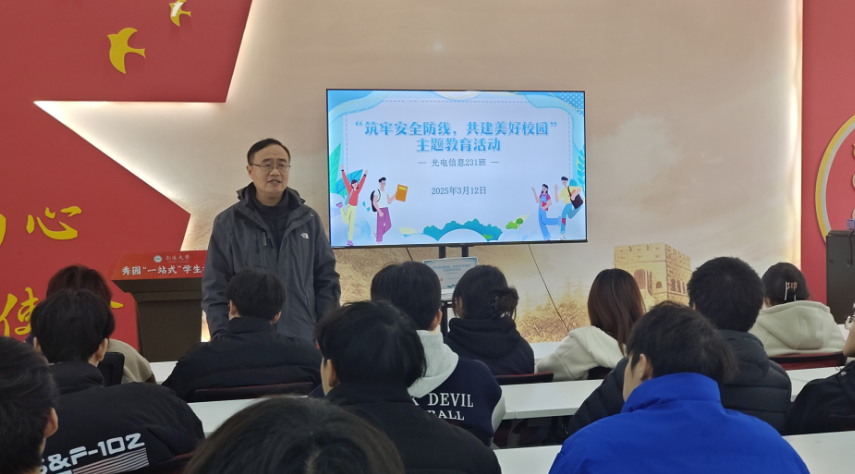 活动伊始,学院副院长、光电信息231班班主任于忠卫结合高校真实案例,以案释法,以法论事,分模块剖析反诈防骗、交通出行、校园安全等七大安全要点。他强调,安全无小事,同学们要时刻绷紧安全这根弦,牢固树立“安全第一,预防为主”的思想,切实提高安全防范意识,掌握必要的安全知识和技能,做到防患于未然。随后,在互动环节中,同学们积极踊跃发言,纷纷分享自己身边发生过的安全小故事以及从中汲取的经验教训,现场气氛热烈,引导大家在交流中进一步增强了安全防范意识。活动中还向同学们发放了《校园学生安全倡议书》,并组织学生认真学习、郑重签署。同学们纷纷表示,将自觉遵守文明规范,不断提高安全意识,共同维护健康有序的校园环境。