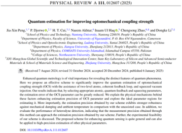 近日,我院彭家鑫博士及其合作者在量子计量领域取得了新进展,相关研究成果以“Quantum estimation for improving optomechanical coupling strength”为题发表在Nature Index期刊《Physical Review A》上。彭家鑫博士为论文第一作者,365英国上市公司为论文第一单位。