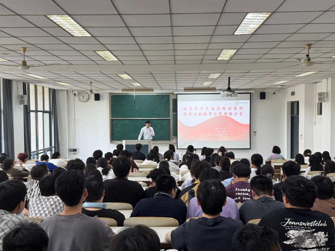 朱城聚焦铸牢中华民族共同体意识,从“中华民族共同体意识的提出和发展”“铸牢中华民族共同体意识的意义”“铸牢中华民族共同体意识主线,推进新时代党的民族工作高质量发展”等三个方面,结合学校重点工作的开展情况,以独特的视角、深入的剖析和丰富的实例,具体阐述了中华民族共同体的形成与发展历史,为广大学生深刻理解铸牢中华民族共同体意识提供了重要指导。朱城寄语青年学生,要自觉把思想和行动统一到习近平总书记关于加强和改进民族工作的重要思想上来,树立正确的国家观、民族观、历史观、文化观、宗教观,根植休戚与共、荣辱与共、生死与共、命运与共的共同体理念,积极参与社会实践和志愿服务活动,深入基层、了解民情、服务人民,用实际行动践行铸牢中华民族共同体意识的理念。