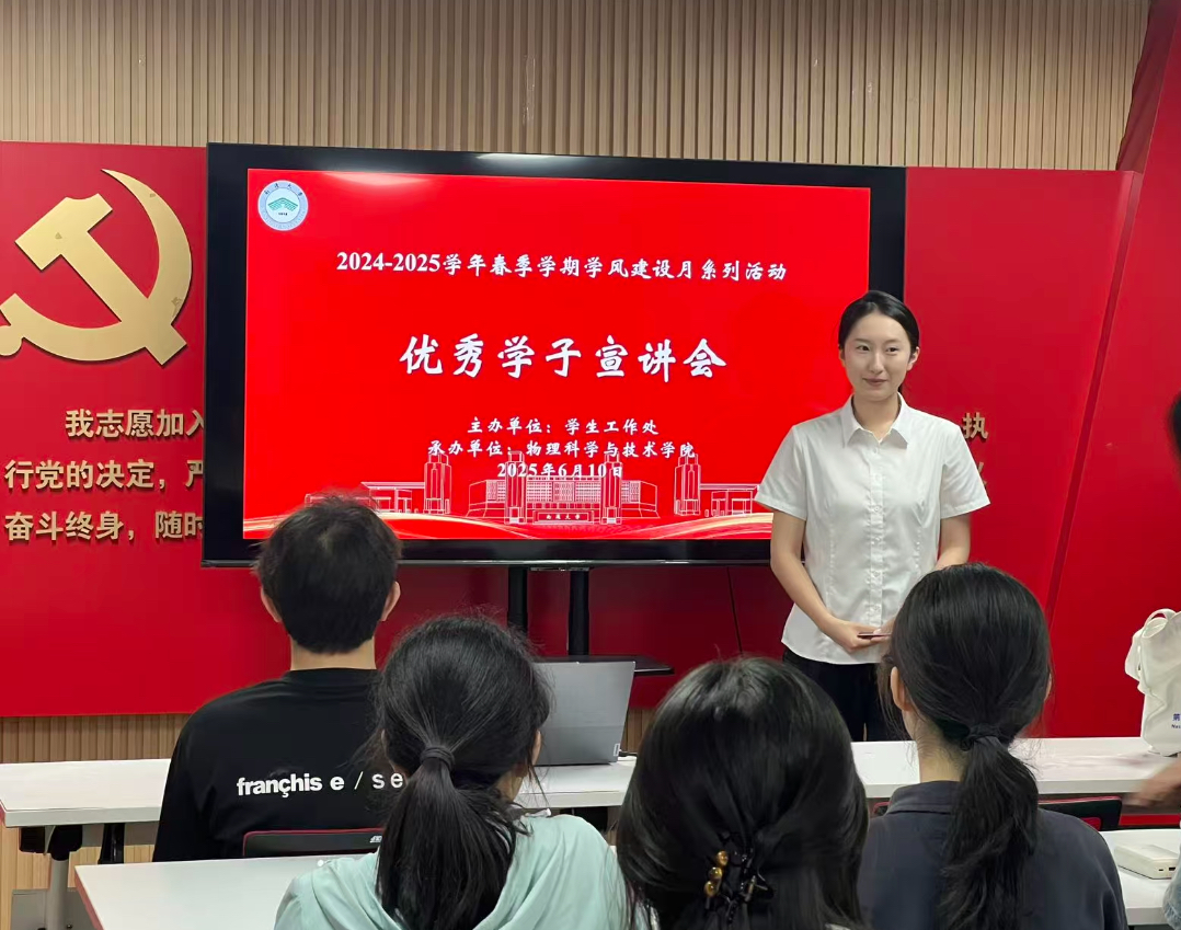 为充分发挥优秀学子的示范引领作用,营造"比、学、赶、超"的良好学习氛围,6月10日,物科院在恬园“一站式”学生社区成功举办学风建设月系列活动之优秀学子成长经验宣讲会。活动特邀校优秀学子宣讲团成员关忆萌、薛旺两位学生代表做经验分享。