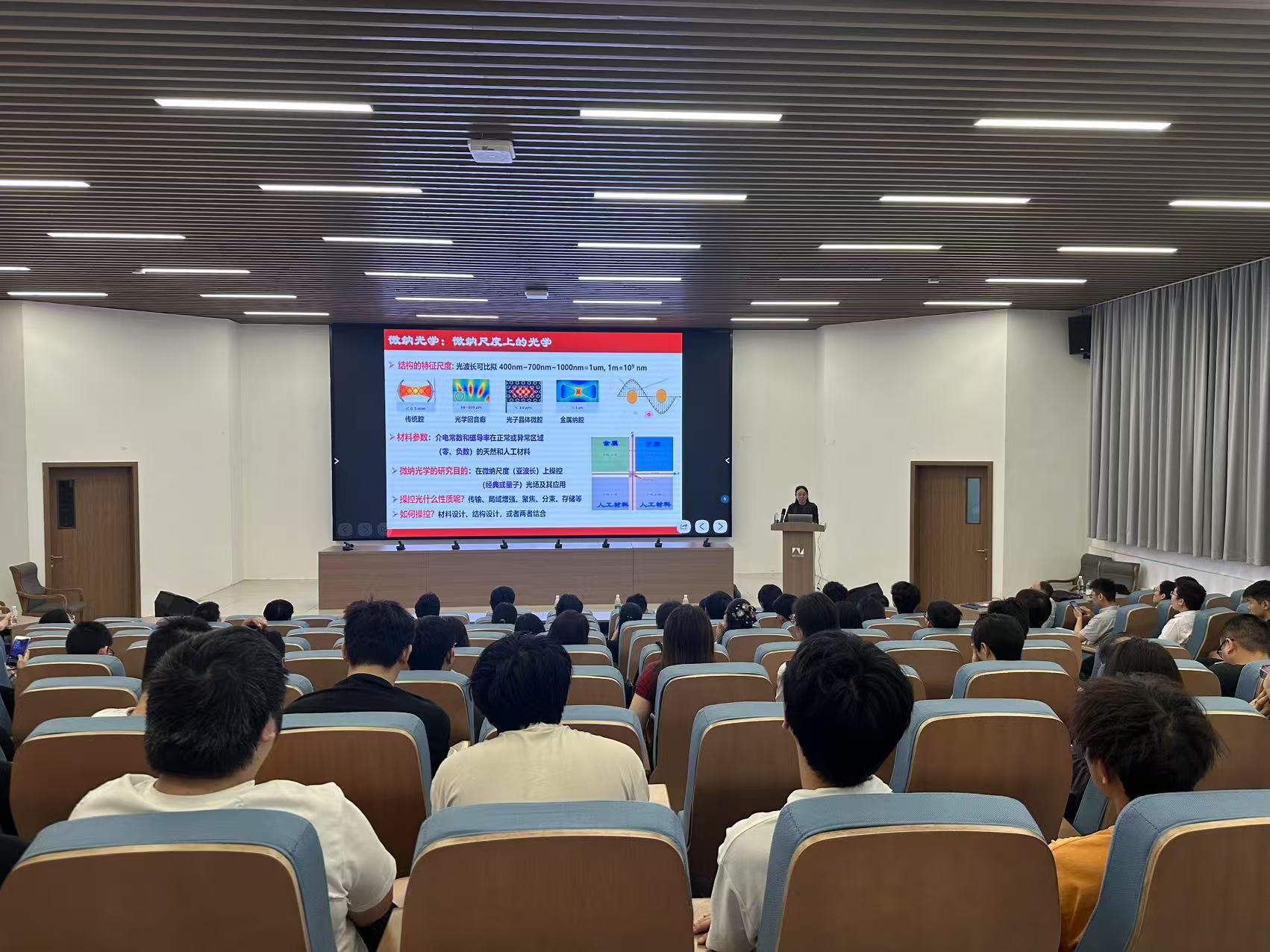 古英在报告中指出,随着量子器件的集成化和小型化,微纳光子学为芯片上量子光学和量子信息研究提供了新的维度和效应。她从多种微纳光子结构及其组合结构中的光学模式出发,深入探讨了量子光场与量子体系的耦合、腔量子电动力学、量子干涉及量子信息等领域的研究进展,揭示了微纳尺度上光与量子体系相互作用的新现象与新效应,为相关领域的理论研究和潜在应用提供了重要基础。此次讲座为英国365集团师生提供了与顶尖学者面对面交流的机会,进一步拓宽了学术视野,激发了科研热情。