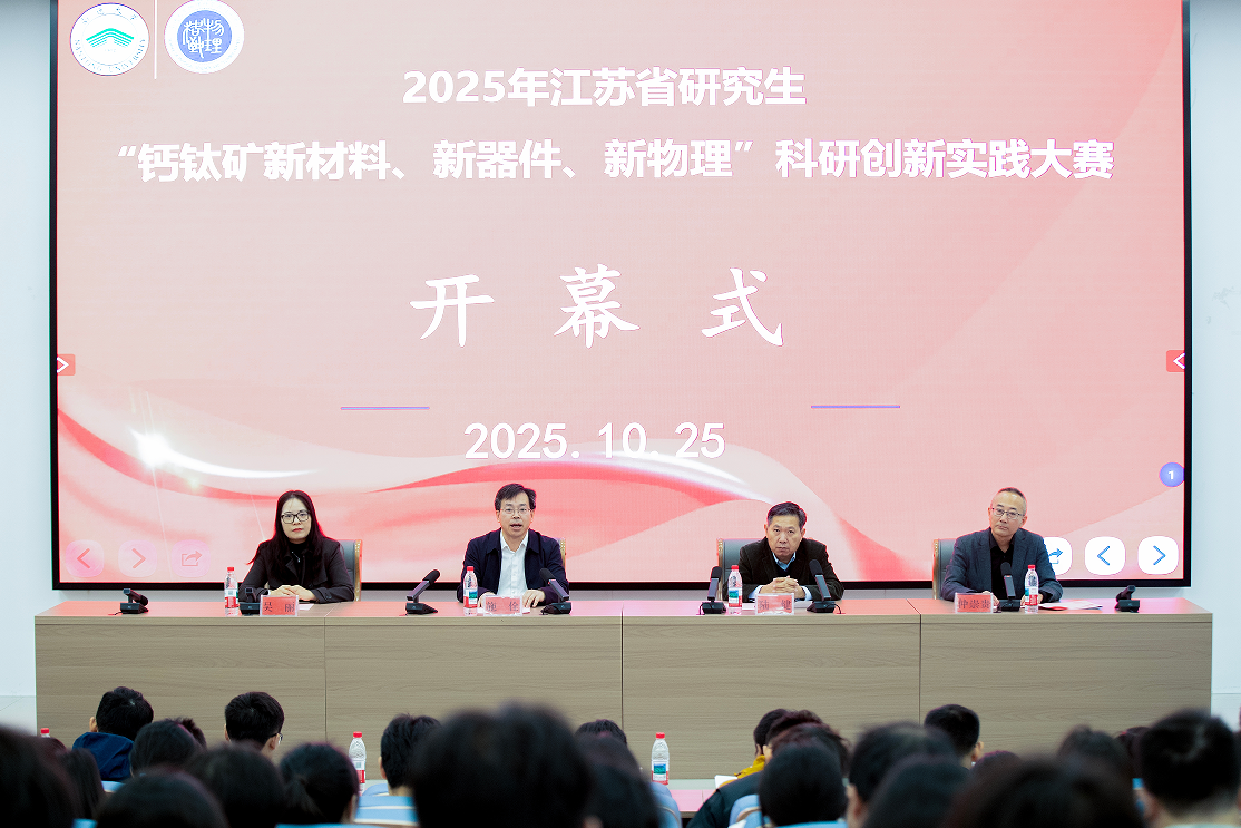 10月24-26日,2025年江苏省研究生科研创新实践大赛在我校成功举办。校党委常委、副校长施佺,省理学I类研究生教育指导委员会委员、省物理学会副理事长、南京理工大学陆健教授出席开幕式并致辞。研究生院常务副院长、学科建设办公室主任吴丽,研究生院副院长刘俊出席开幕式,物理科学技术学院院长仲崇贵主持开幕式。