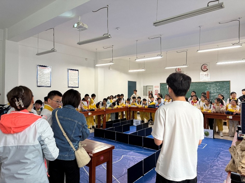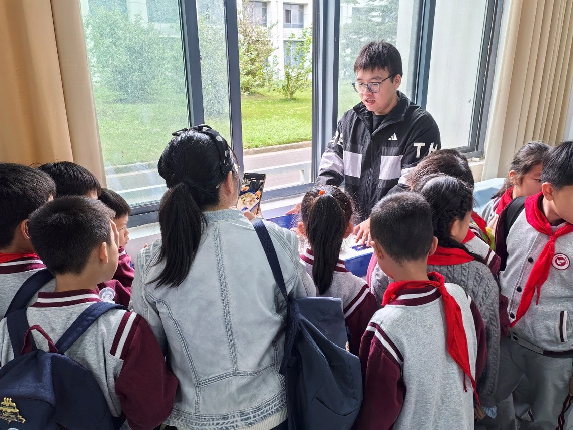 为了确保活动精准对接不同年龄段学生的认知特点,物科院实验中心支部与研究生支部提前开展需求调研,制定个性化活动方案。新区学校431名三年级学生沿着9个精心规划的研学点位展开探索,内容涵盖物理科普基地演示实验室、光学与电学趣味实验展示、机器人大赛成果展示等核心模块,同时融入退役军人纪念馆参观与无人机互动环节。针对郭里园小学357名六年级学生,在保留基础物理实验项目的基础上,特别增设消防基地模拟逃生实训课程,通过实践操作强化学生的消防安全意识与应急自救能力。